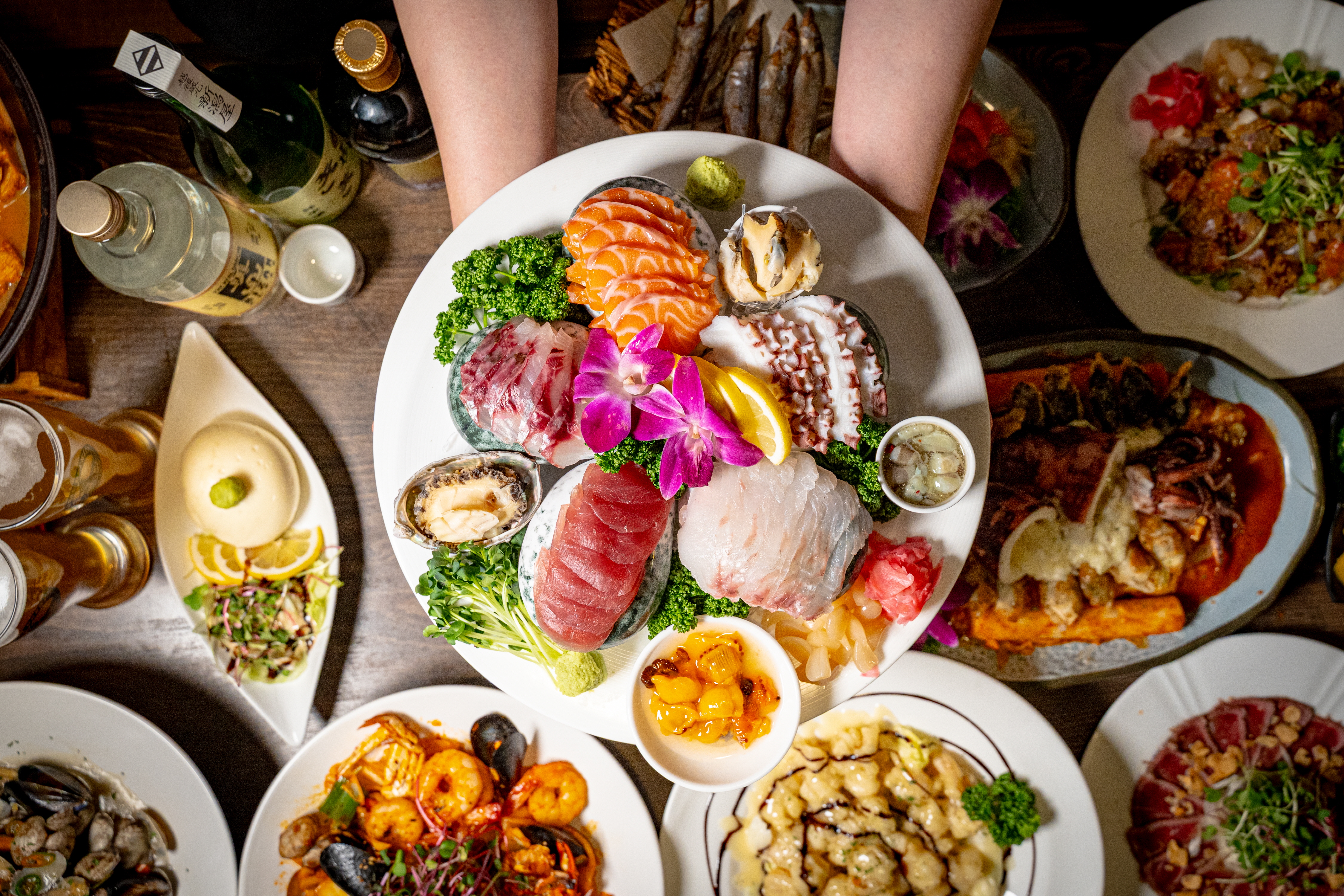 모듬사시미 (2인) 39,000 | 광어+연어 39,000 | 오징어치즈떡볶이 29,000 | 크림짬뽕탕 28,000 | 나가사끼짬뽕탕 28,000 | 매운 해물오뎅탕 26,000 | 매운 해물 야끼우동 24,000 | 조개술찜 28,000 | 황비홍깐풍기 28,000 | 치킨가라아게 22,000 | 통오징어 가라아게 22,000 | 크림닭고기 25,000 | 마요크림새우 25,000 | 로제떡볶이 25,000 | 차돌 숙주볶음 22,000 | 오꼬노미야끼 22,000 | 모듬고로케 23,000 | 명란 계란말이 22,000 | 메로구이 28,000 | 시샤모구이 20,000 | 아보카도명란구이 25,000 | 소고기타다끼 29,000 | 차돌박이 샐러드 25,000 | 명란회무침 22,000 | 타코와사비 15,000 | 모찌리도후 15,000