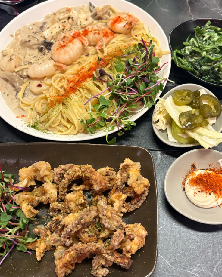 감태김밥+육회 26,000 | 바지락스지전골 26,000 | 고추장찌개 18,000 | 치즈파스타떡볶이 17,000 | 꼬막쫄면무침 16,000 | 한판막국수보쌈 28,000 | 주전자꼬치오뎅 15,000 | 모듬오뎅전골 22,000 | 버터새우관자볶음 24,000 | 버터바지락술찜(파스타포함) 22,000 | 유린기 18,000 | 롱치즈30cm돈까스 18,000 | 직화오돌뼈구이 15,000 | 청어알젓두부쌈 14,000 | 30cm 치즈계란말이 13,000 | 새우튀김 10,000 | 1인 순살튀김 10,000 | 해물짬뽕라면 8,000 | 닭껍질튀김 8,000 | 탕후루 토마토 6,000 | 오이탕탕이 5,000 | 옛날 떡꼬치 5,000